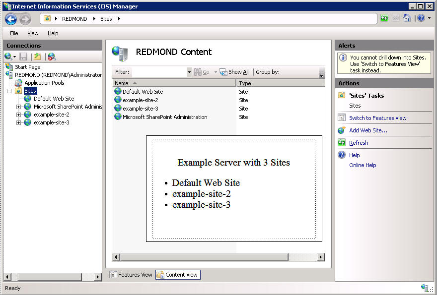 Example of a server with 3 sites